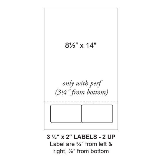 3.5" x 2" Integrated Label Form Sheet, 2 Up Rounded Corner Labels, 8 ½” x 14” Sheet, Permanent Adhesive, 1,500 Sheets/Case